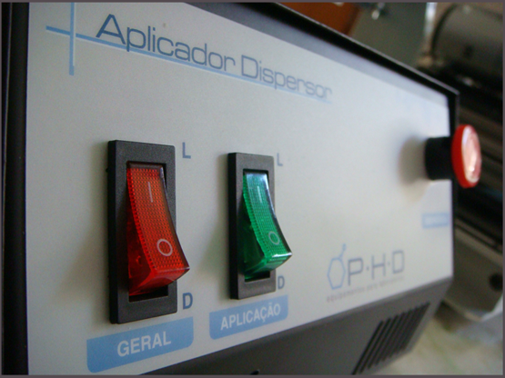 Equipamento desenvolvido para aplicar partículas aderentes de baixa fluidez no estado liquido em superfície plana de modo continuo e uniforme.