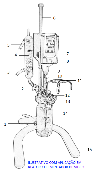 Equipamento desenvolvido para promover agitação mecânica rotativa através de movimento circular de hélices em fluidos diversos, líquidos semi-viscosos e material em suspensão. Possui indicação digital da velocidade em rpm permitindo maior resistência em trabalhos contínuos.