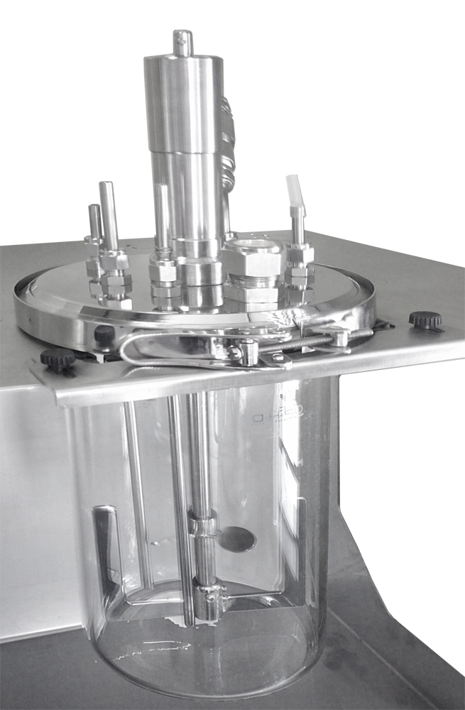 - 1 bocal central com selo mecânico comunicante com o interior do vaso reator para agitação mecânica