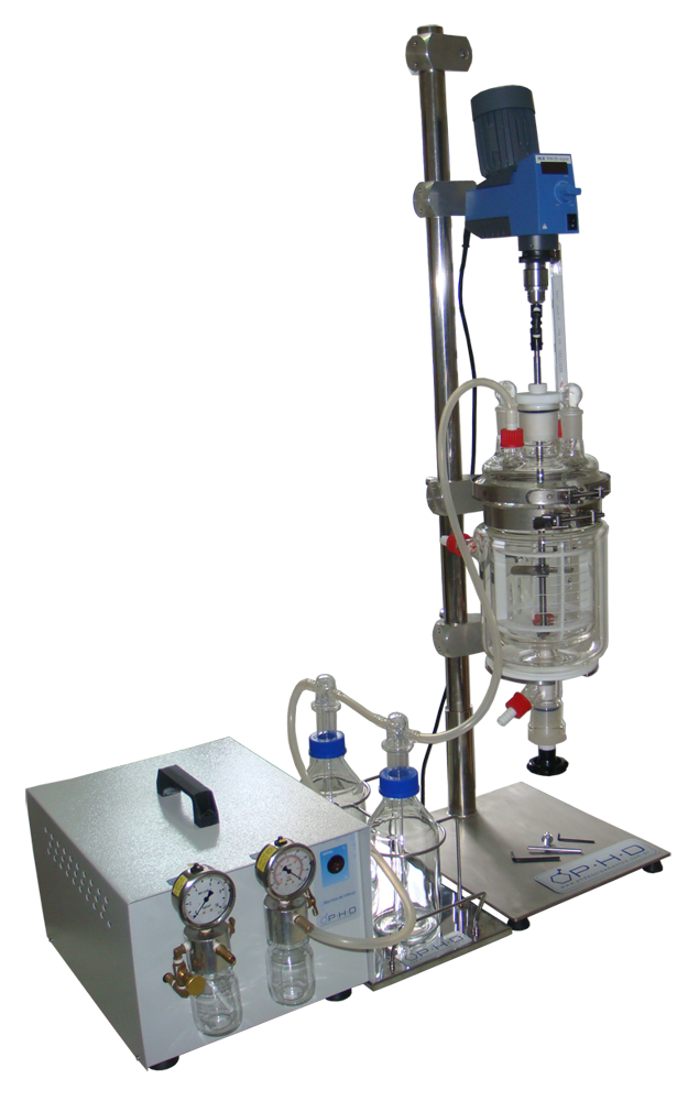 - 1 bocal central com selo mecânico comunicante com o interior do vaso reator para agitação mecânica