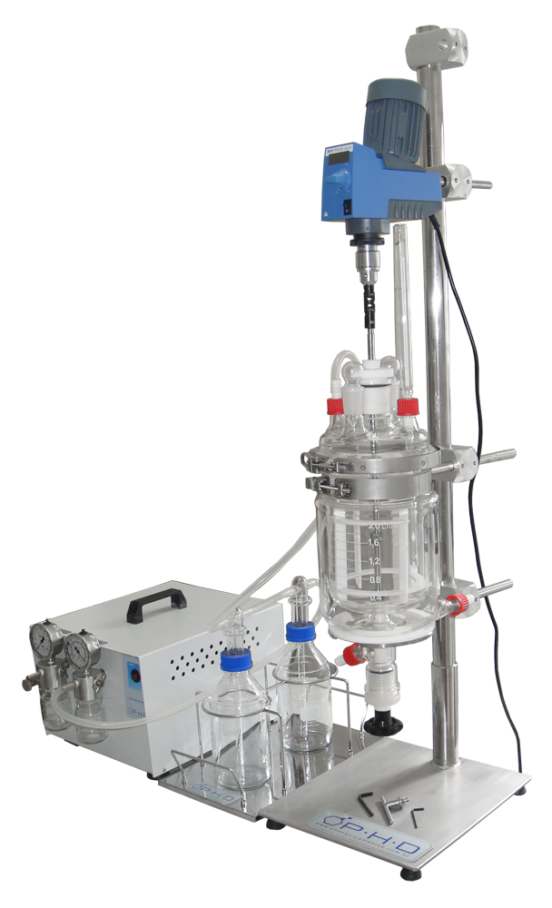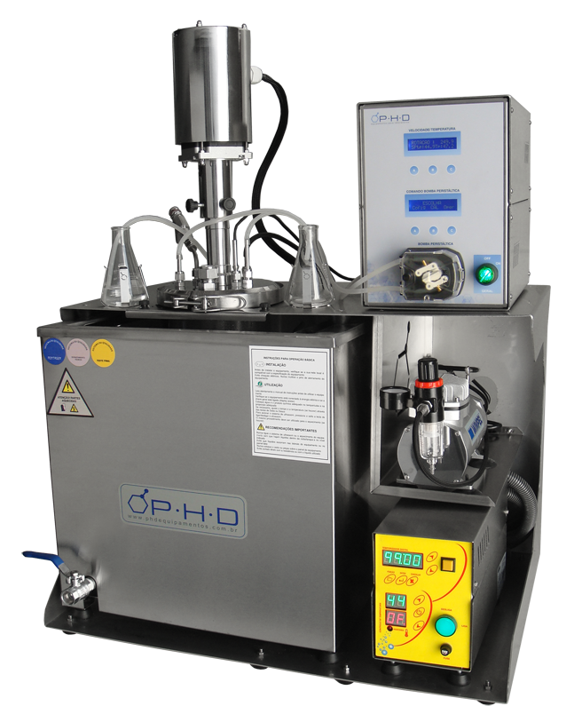 Equipamento aplicável em reações químicas e ou biológicas com monitoramento constante e adição / retirada de produtos durante o processo. Uso em laboratórios de pesquisa como planta experimental em produção de derivados químicos e ou bioquímicos em estudo aeróbicos ou anaeróbios.